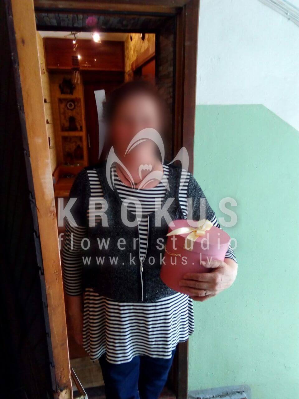 Mēs piegādājām vēl vienu pasūtījumu uz pilsētu . Pasūtītājs vēlējās: Ziedu piegāde Flowerbox ar macarooniem (Izmērs: