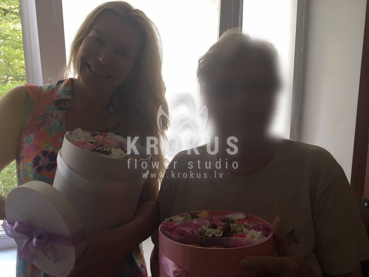 . Ziedu piegāde Flowerbox ar macarooniem (Izmērs: