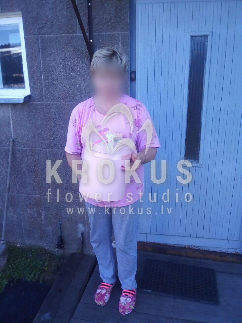 Mēs piegādājām vēl vienu pasūtījumu uz pilsētu . Pasūtītājs vēlējās: Ziedu piegāde Flowerbox ar macarooniem (Izmērs: