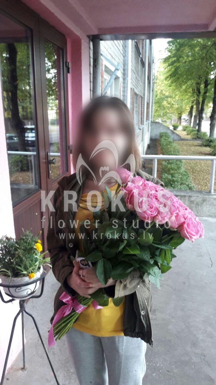 Ziedu sastāvā: Rozā rozes.