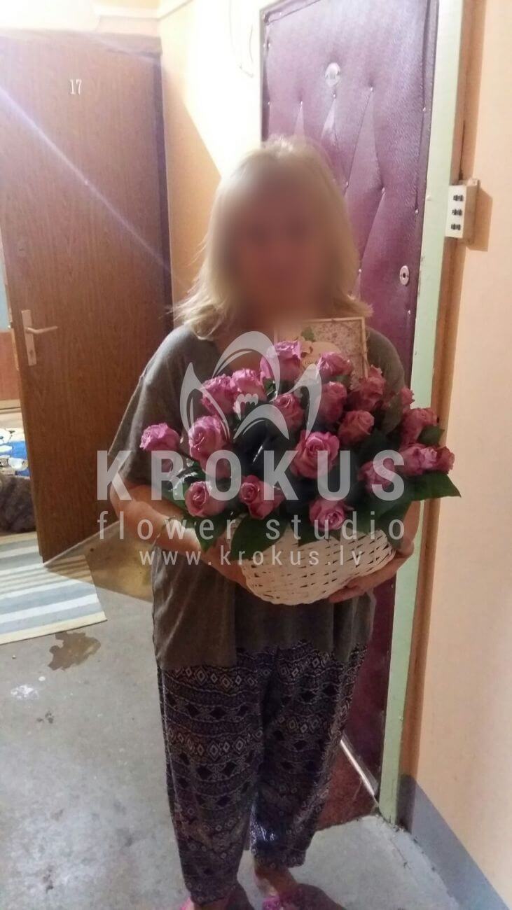 Mēs piegādājām vēl vienu pasūtījumu uz pilsētu . Pasūtītājs vēlējās: Ziedu piegāde Divkrāsu rozes grozā