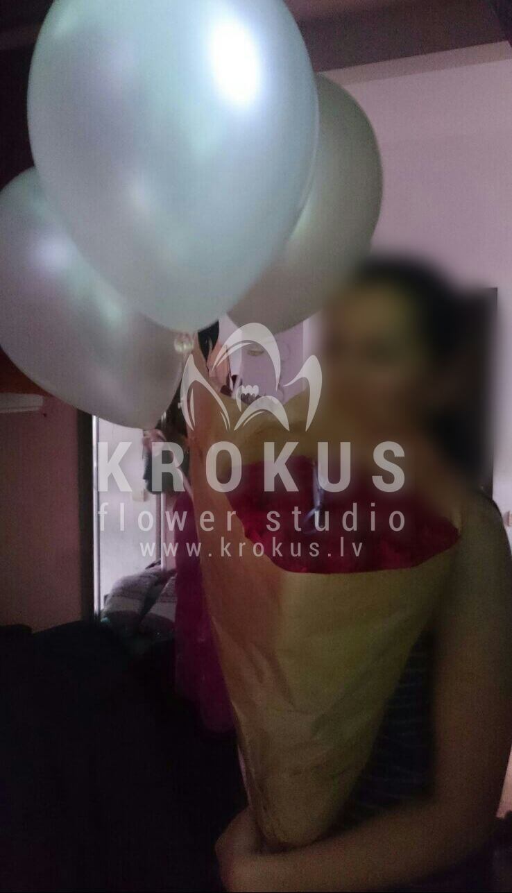 Mēs piegādājām vēl vienu pasūtījumu uz pilsētu . Pasūtītājs vēlējās: Ziedu piegāde Baltas rozes XXL 50cm. Ziedu piegāde Hēlija baloni asortimentā (cena par 1 gab)