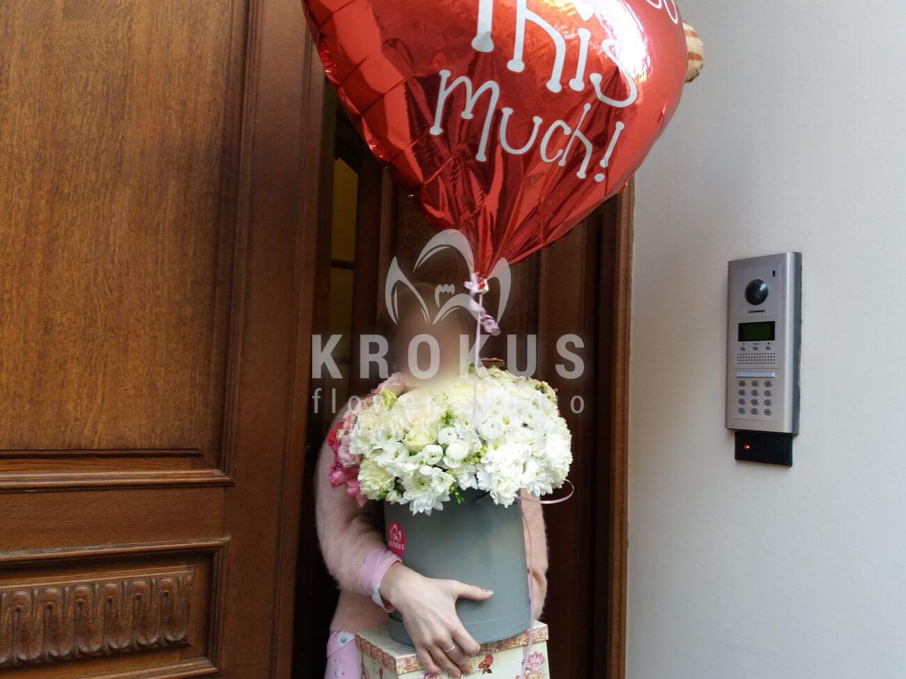 Fotogrāfijai ir ilustratīvs nolūks. Kastes krāsa var atšķirties.). Ziedu piegāde Saldumu mīļotājs. Ziedu piegāde Folija Balons