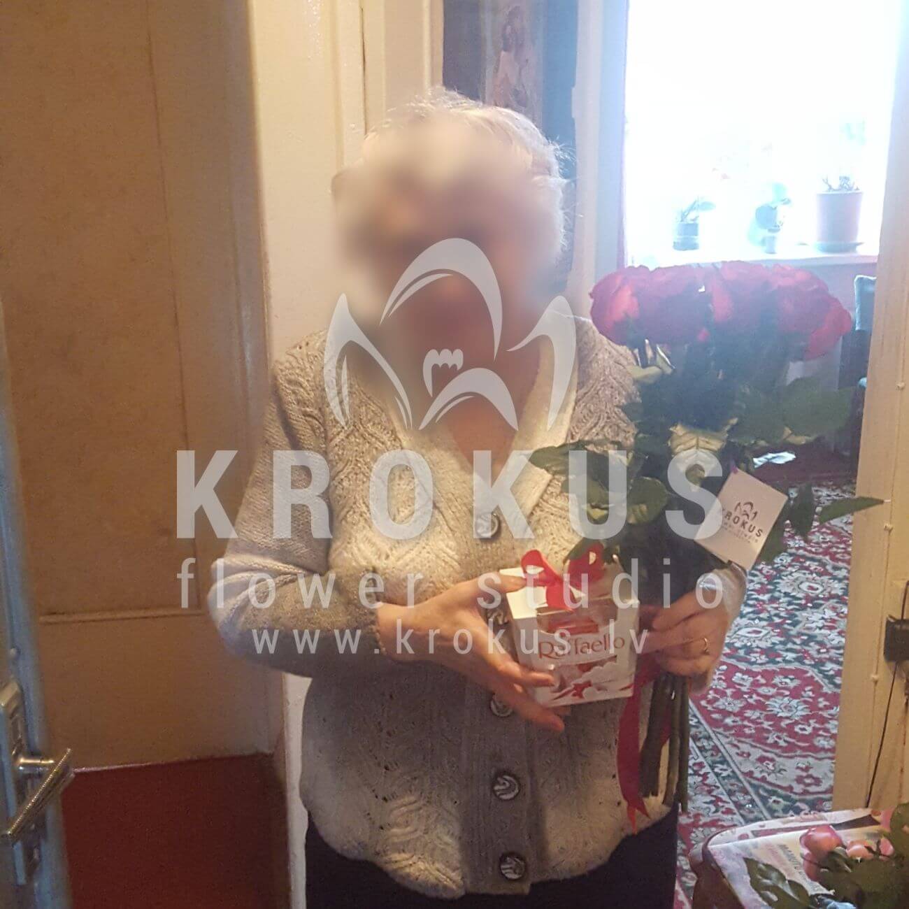Mēs piegādājām vēl vienu pasūtījumu uz pilsētu . Pasūtītājs vēlējās: Ziedu piegāde Sarkanas Holandes Rozes 40cm. Ziedu piegāde Raffaello 150g (Konfektes RAFFAELLO, 150g