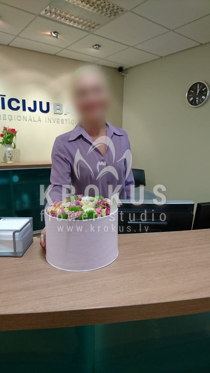 Mēs piegādājām vēl vienu pasūtījumu uz pilsētu . Pasūtītājs vēlējās: Ziedu piegāde Flowerbox ar macarooniem (Izmērs: