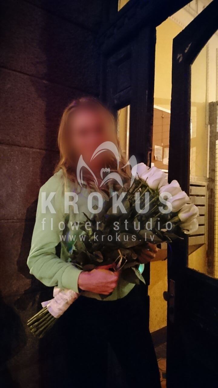 Mēs piegādājām vēl vienu pasūtījumu uz pilsētu . Pasūtītājs vēlējās: Ziedu piegāde Baltas rozes XXL 50cm