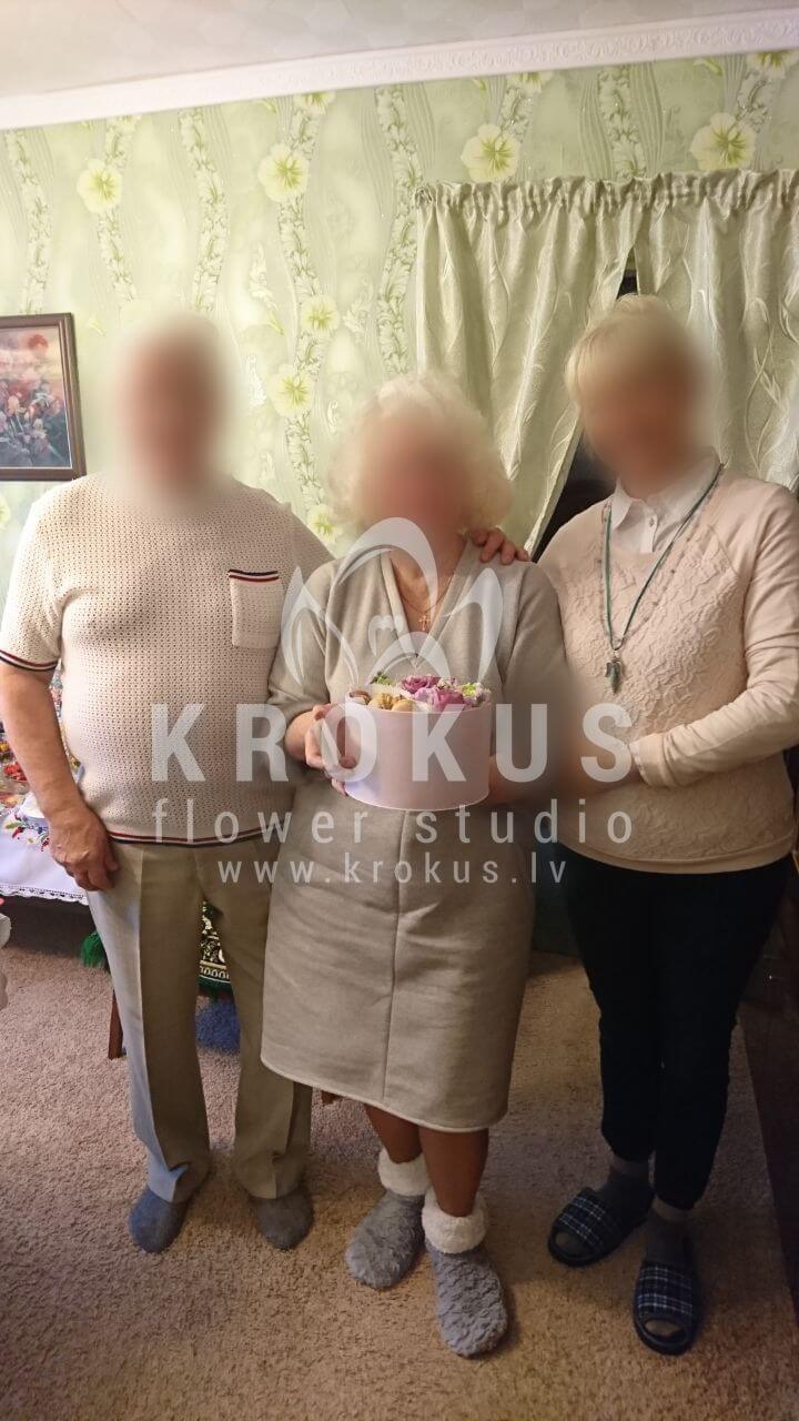 Mēs piegādājām vēl vienu pasūtījumu uz pilsētu . Pasūtītājs vēlējās: Ziedu piegāde Flowerbox ar macarooniem (Izmērs: