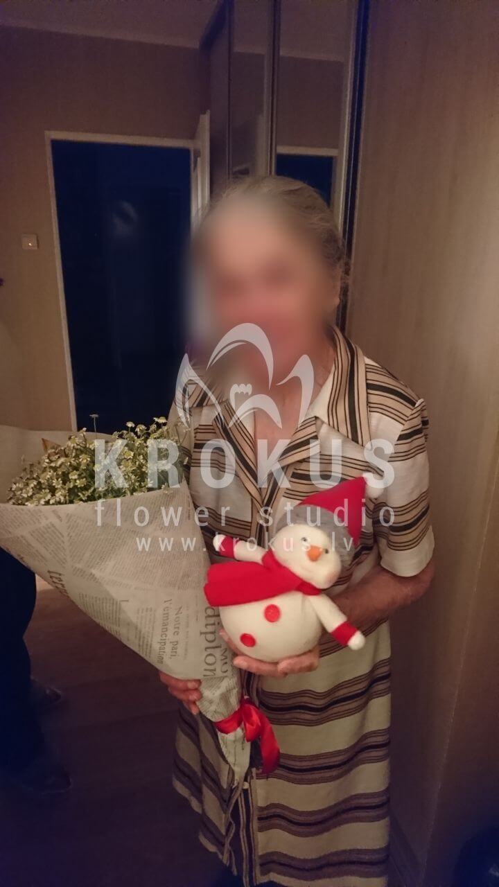 Mēs piegādājām vēl vienu pasūtījumu uz pilsētu . Pasūtītājs vēlējās: Ziedu piegāde Romantika. Ziedu piegāde Sniegavīrs 20cm