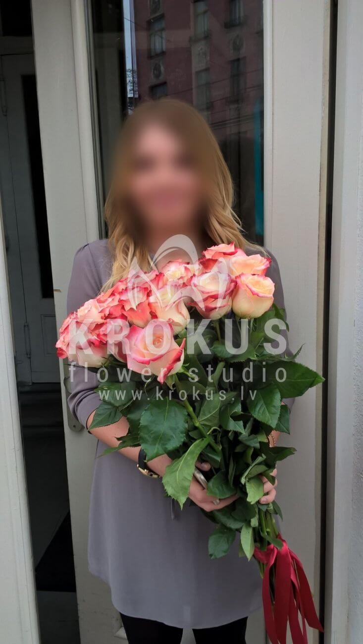 Mēs piegādājām vēl vienu pasūtījumu uz pilsētu . Pasūtītājs vēlējās: Ziedu piegāde Divkrāsu rozes