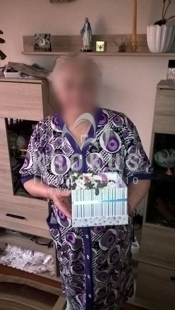 Mēs piegādājām vēl vienu pasūtījumu uz pilsētu . Pasūtītājs vēlējās: Ziedu piegāde Flowerbox ar macarooniem (Izmērs: