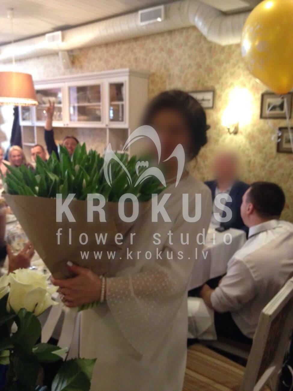 Mēs piegādājām vēl vienu pasūtījumu uz pilsētu . Pasūtītājs vēlējās: Ziedu piegāde Baltas tulpes