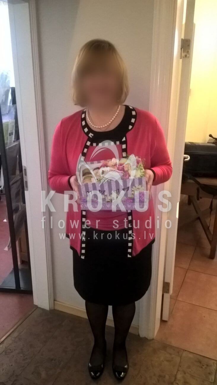 Mēs piegādājām vēl vienu pasūtījumu uz pilsētu . Pasūtītājs vēlējās: Ziedu piegāde Flowerbox ar macarooniem (Izmērs: