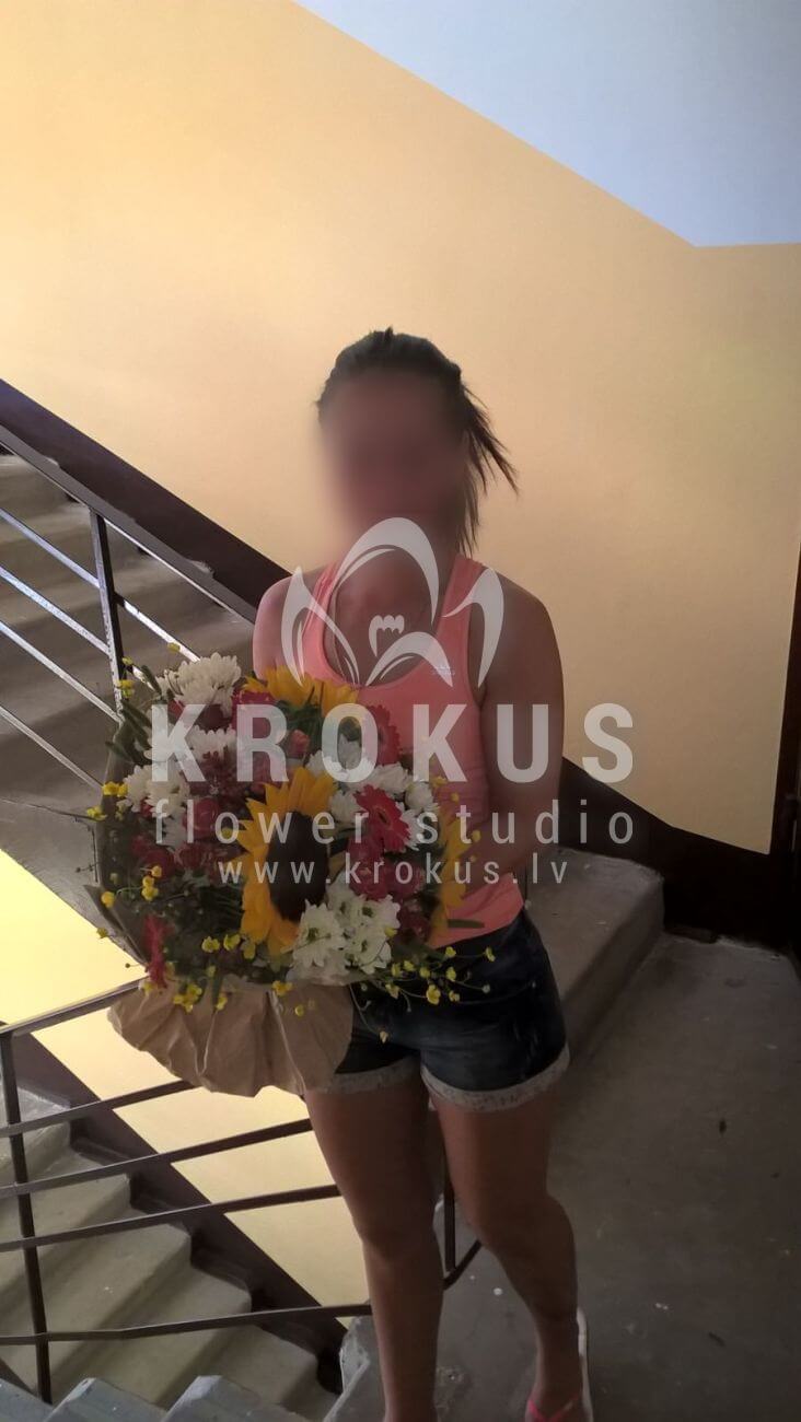 Mēs piegādājām vēl vienu pasūtījumu uz pilsētu . Pasūtītājs vēlējās: Ziedu piegāde Latvijas pļava (Pušķa sastāvs var nedaudz atšķirties no attēlā redzamā, atkarībā no sezonas!