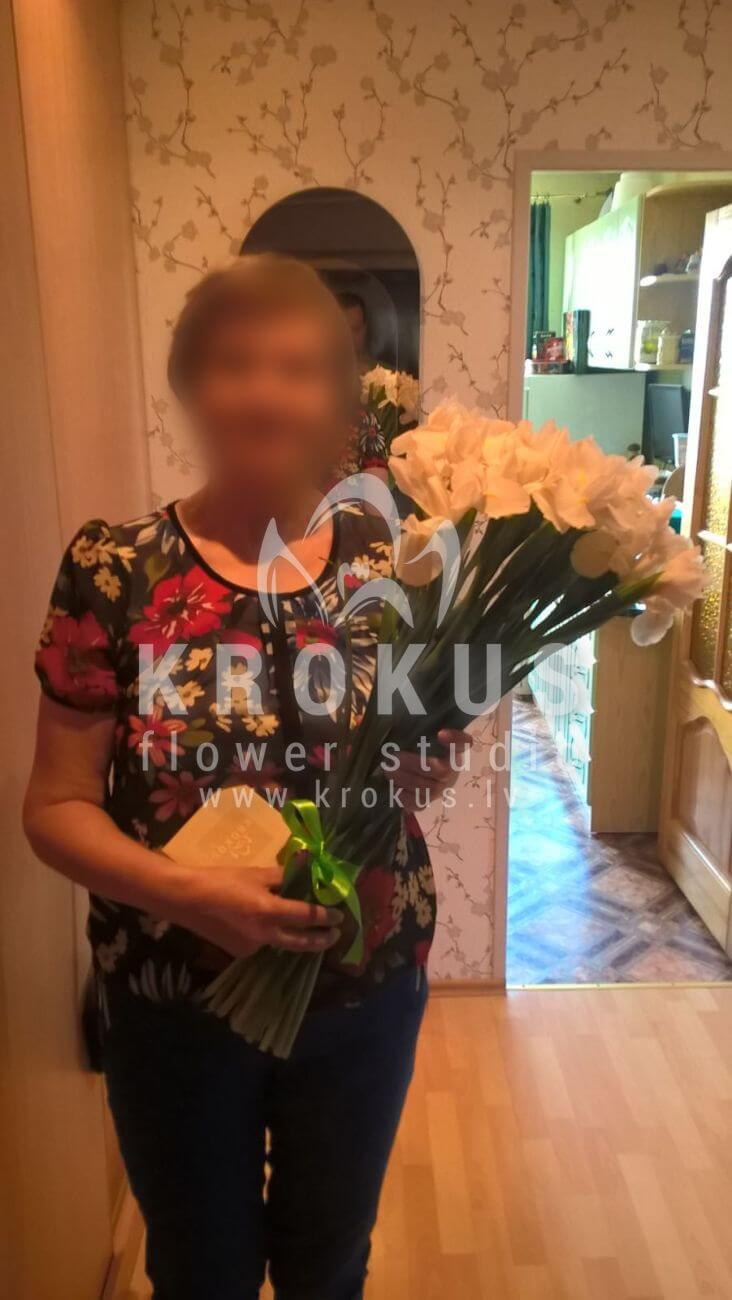 Mēs piegādājām vēl vienu pasūtījumu uz pilsētu . Pasūtītājs vēlējās: Ziedu piegāde Balti īrisi