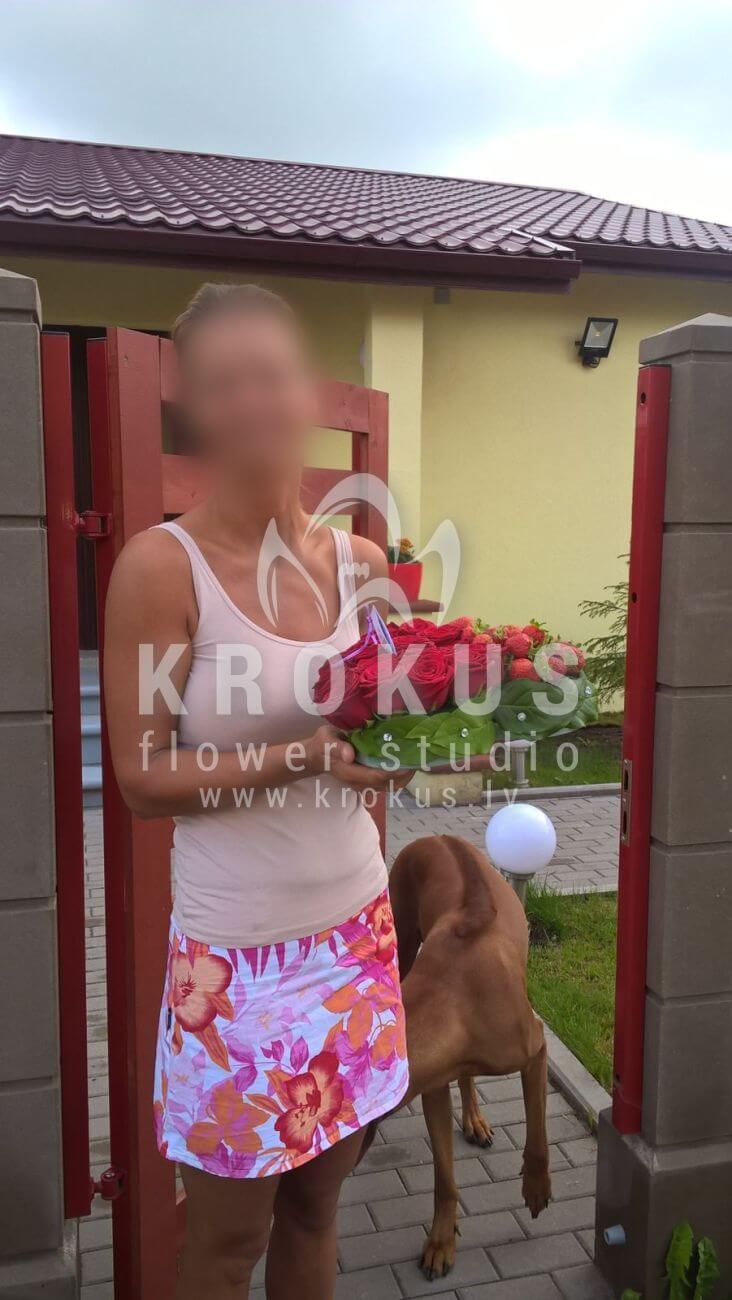 Ziedu sastāvā: Sarkanas rozes, Salal (Goltjēra).