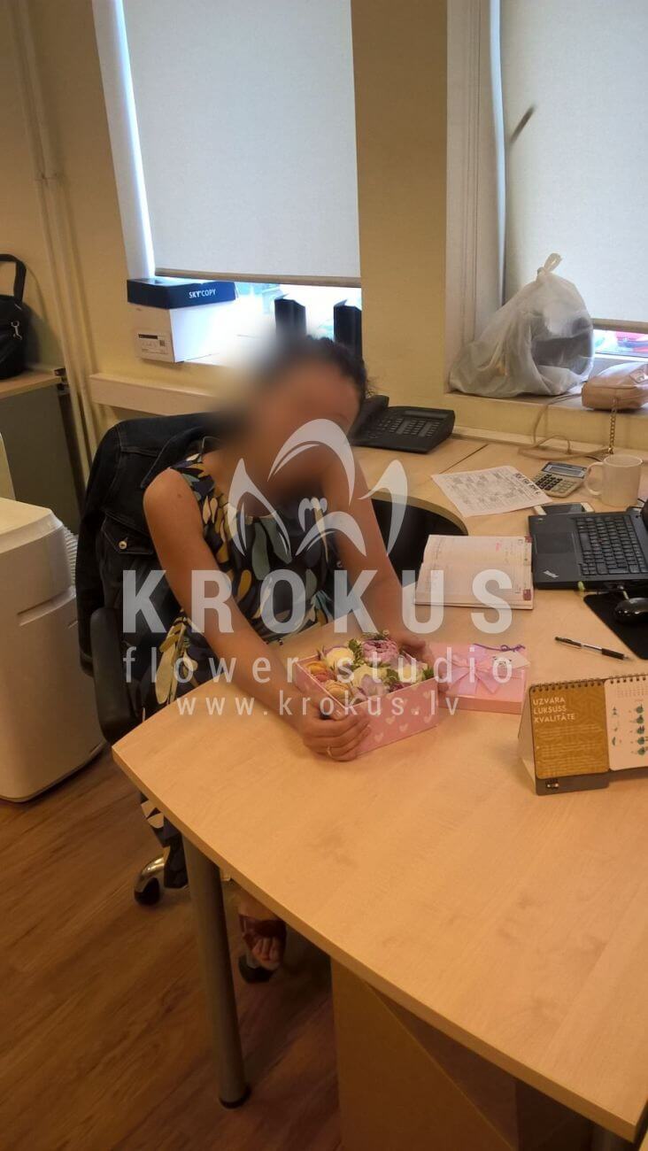 Mēs piegādājām vēl vienu pasūtījumu uz pilsētu . Pasūtītājs vēlējās: Ziedu piegāde Flowerbox ar macarooniem (Izmērs: