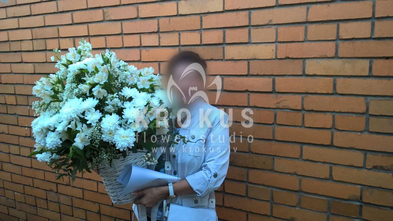 Jums patiks sniegbaltais pušķa sastāvs – krizantēmas, alstromērijas, lauvmutītes, matiolas, kas dekorēts ar salalahu, eikaliptu un ligustromu. Šis pušķis ilgi priecēs adresātu, jo, lai gan šie ziedi skaitās eleganti, tie vēl ir arī izturīgi.