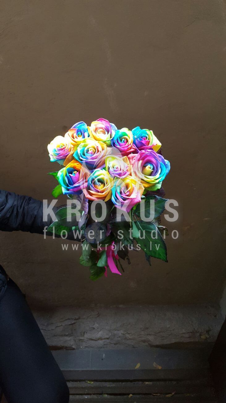 Mēs piegādājām vēl vienu pasūtījumu uz pilsētu . Pasūtītājs vēlējās: Ziedu piegāde Varavīksnes rozes