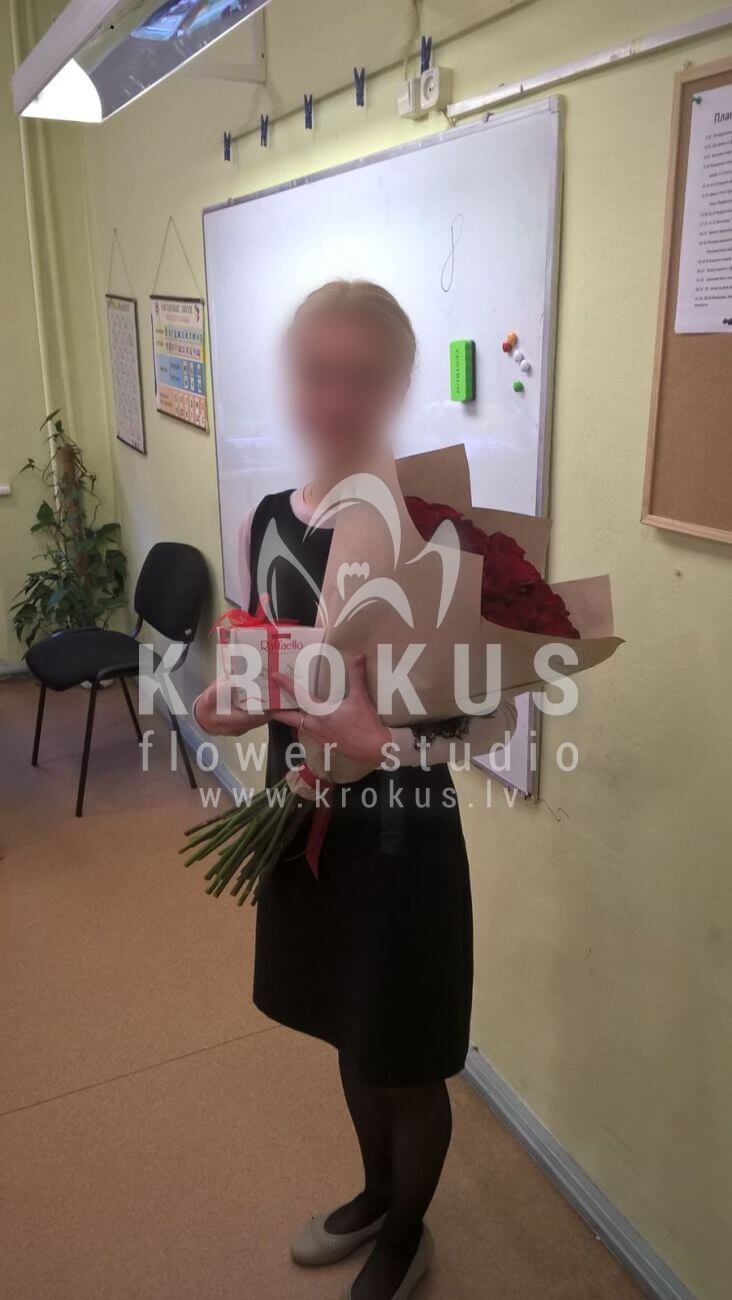 Mēs piegādājām vēl vienu pasūtījumu uz pilsētu . Pasūtītājs vēlējās: Ziedu piegāde Stils❤️ (Sirsnīgs ziedu kompliments liegs jums iespēju lauzīt galvu par to, ko uzdāvināt mīļam cilvēkam. Šis spožais elegantais pušķis modern stilā sastāv no smaržīgām sarkanām rozēm. Skaistais pušķis kraftpapīrā izskatās ļoti stilīgi .Saņemt ziedus dāvanā neuzbāzīgā iepakojumā ir divtik patīkami. Ja jūsu mīļotajam cilvēkam raksturīgi inovatīvi risinājumi – tad šis pušķis domāts tieši viņam.). Ziedu piegāde Raffaello 150g (Konfektes RAFFAELLO, 150g