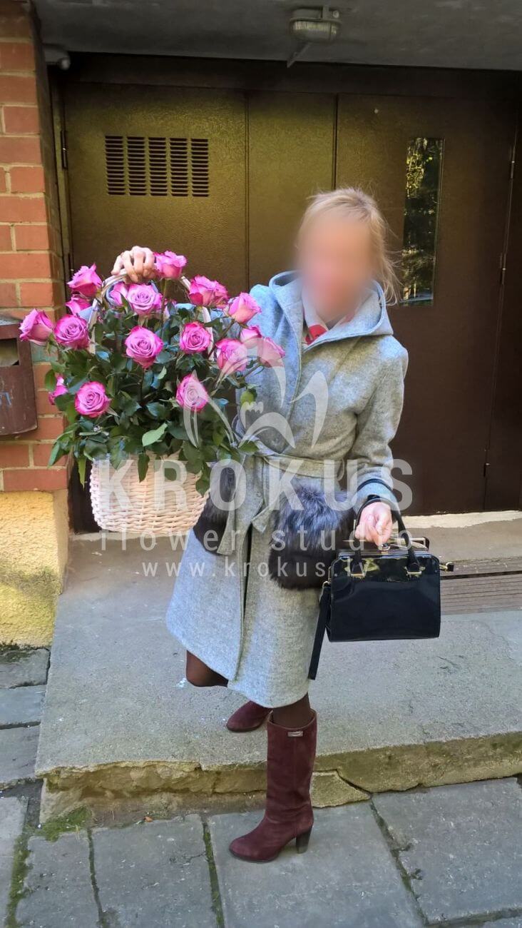 Mēs piegādājām vēl vienu pasūtījumu uz pilsētu . Pasūtītājs vēlējās: Ziedu piegāde Divkrāsu rozes grozā
