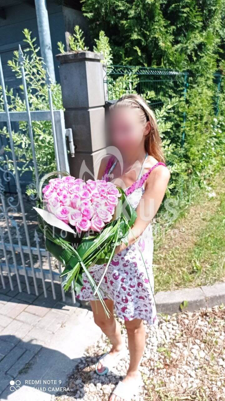 Ziedu sastāvā: Rozā rozes, Aspidistra, Salal (Goltjēra), Bergrass.