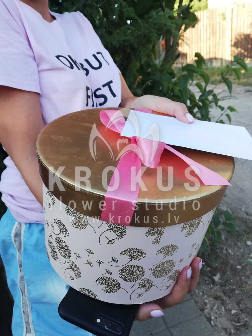 Mēs piegādājām vēl vienu pasūtījumu uz pilsētu . Pasūtītājs vēlējās: Ziedu piegāde Flowerbox ar macarooniem (Izmērs: