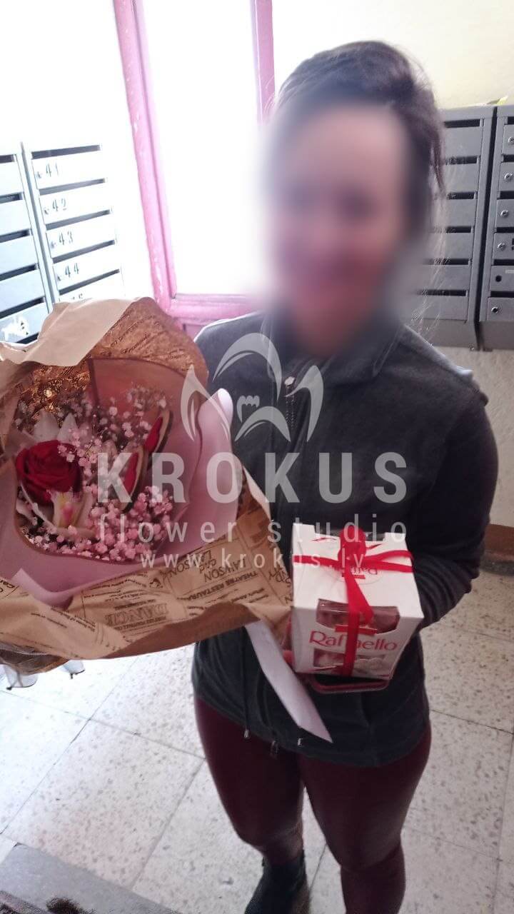 Mēs piegādājām vēl vienu pasūtījumu uz pilsētu . Pasūtītājs vēlējās: Ziedu piegāde gaisa skūpsts. Ziedu piegāde Raffaello 150g (Konfektes RAFFAELLO, 150g