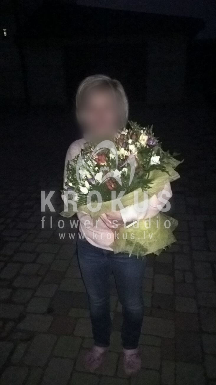 Mēs piegādājām vēl vienu pasūtījumu uz pilsētu . Pasūtītājs vēlējās: Ziedu piegāde Frēziju pušķis "Skaistums" (Attēlam fotogrāfijā ir ilustratīvs raksturs. Ja Jums ir svarīgi saņemt frēzijas noteiktā gatavības stadijā, lūdzam sazināties ar mums pirms veicat pasūtījumu.)