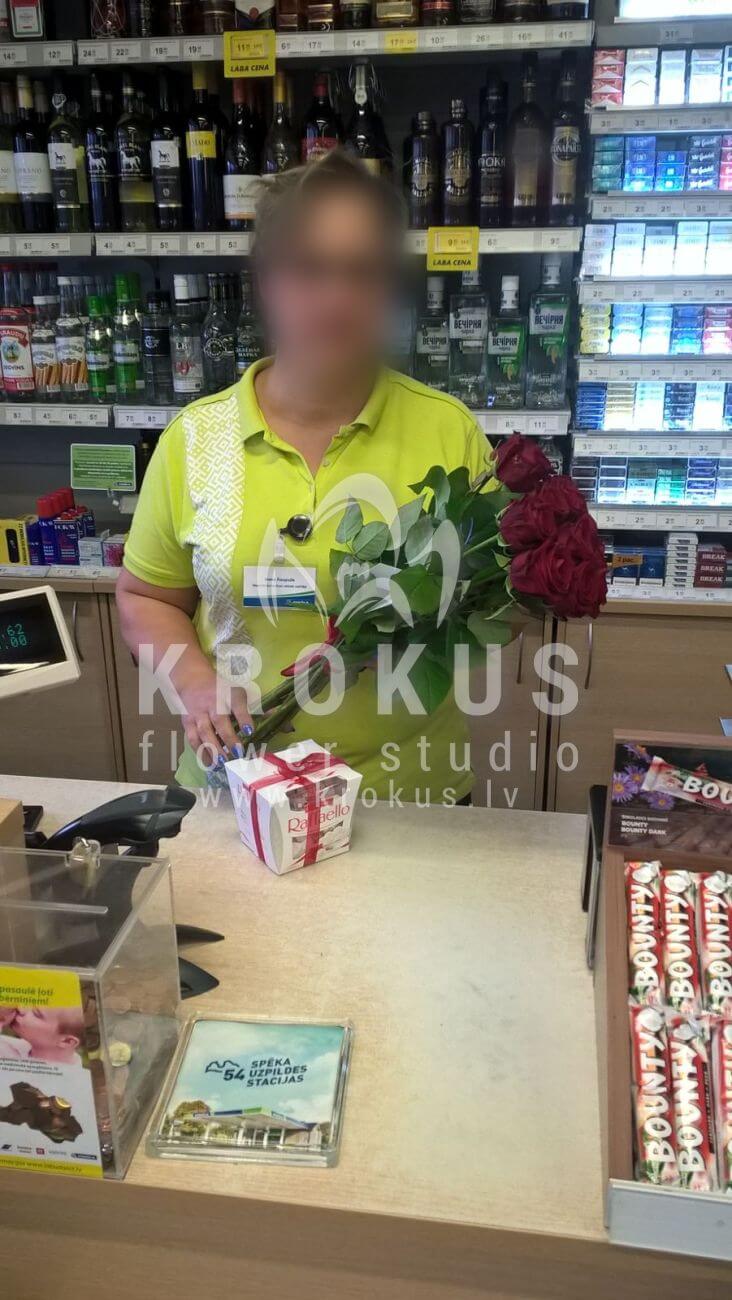 Mēs piegādājām vēl vienu pasūtījumu uz pilsētu . Pasūtītājs vēlējās: Ziedu piegāde Sarkanas Holandes Rozes 40cm. Ziedu piegāde Raffaello 150g (Konfektes RAFFAELLO, 150g