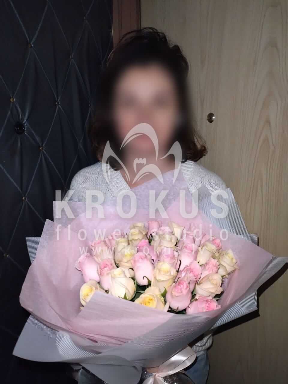 Ziedu sastāvā: Baltas rozes, Rozā rozes.