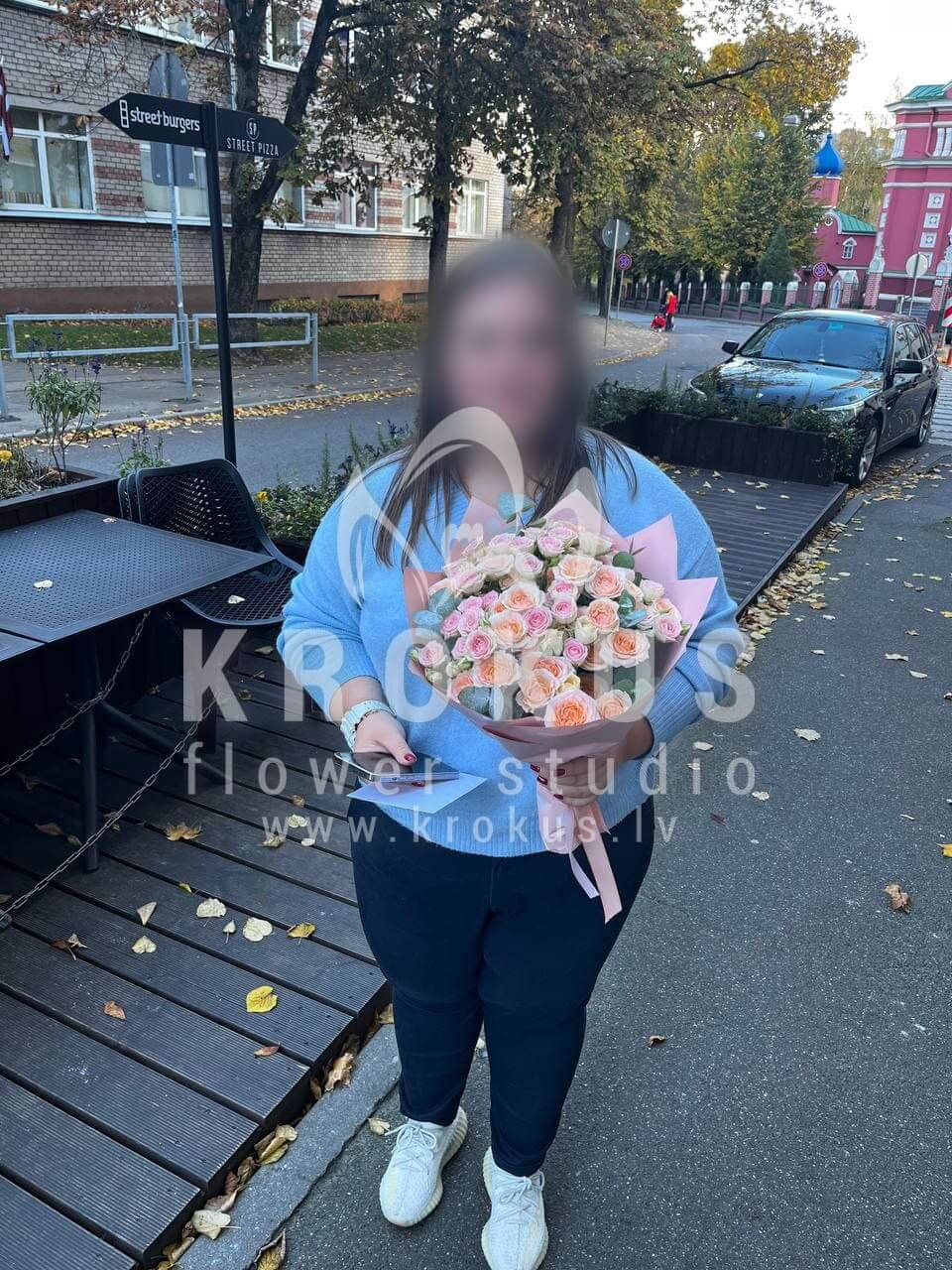 Ziedu sastāvā: Krūmrozes, Eikalipts.