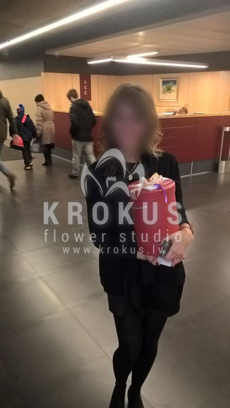 Mēs piegādājām vēl vienu pasūtījumu uz pilsētu . Pasūtītājs vēlējās: Ziedu piegāde Flowerbox ar macarooniem (Izmērs: