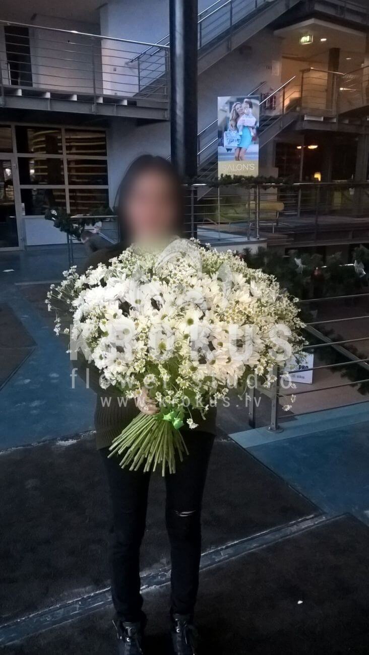 Mēs piegādājām vēl vienu pasūtījumu uz pilsētu . Pasūtītājs vēlējās: Ziedu piegāde Margrietiņu pušķis