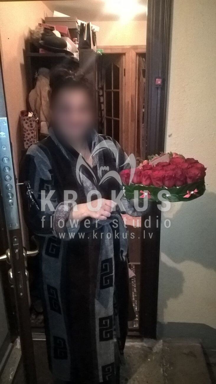 Ziedu sastāvā: Sarkanas rozes, Salal (Goltjēra).