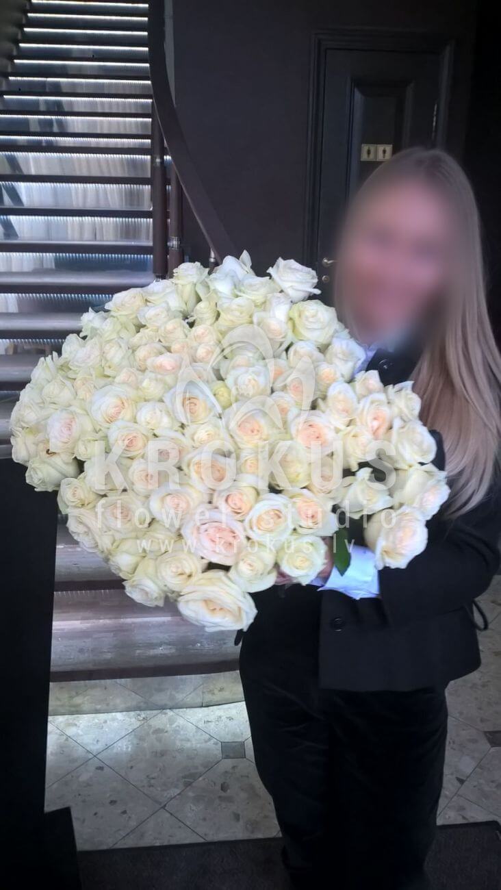 Mēs piegādājām vēl vienu pasūtījumu uz pilsētu . Pasūtītājs vēlējās: Ziedu piegāde Baltas rozes XXL 50cm