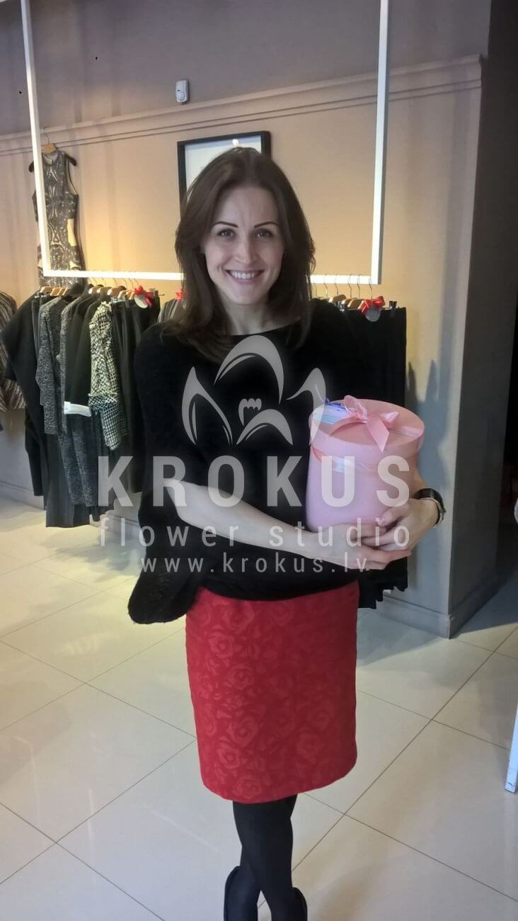 Mēs piegādājām vēl vienu pasūtījumu uz pilsētu . Pasūtītājs vēlējās: Ziedu piegāde Flowerbox ar macarooniem (Izmērs: