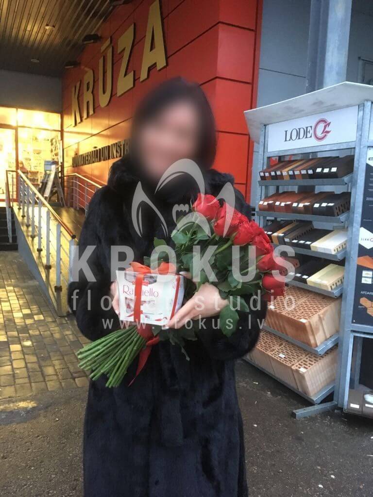 Mēs piegādājām vēl vienu pasūtījumu uz pilsētu . Pasūtītājs vēlējās: Ziedu piegāde Sarkanas Holandes Rozes 40cm. Ziedu piegāde Raffaello 150g (Konfektes RAFFAELLO, 150g