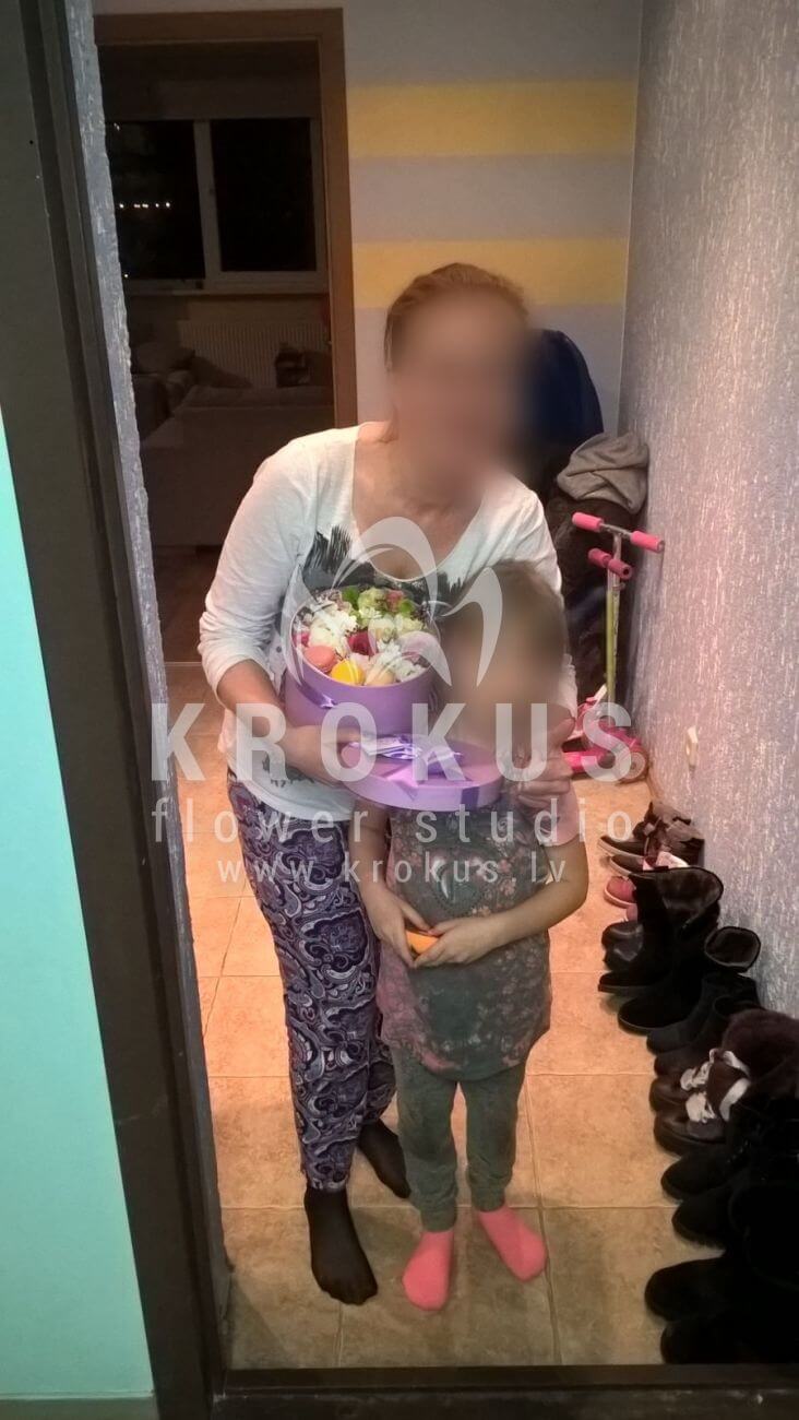 Mēs piegādājām vēl vienu pasūtījumu uz pilsētu . Pasūtītājs vēlējās: Ziedu piegāde Flowerbox ar macarooniem (Izmērs: