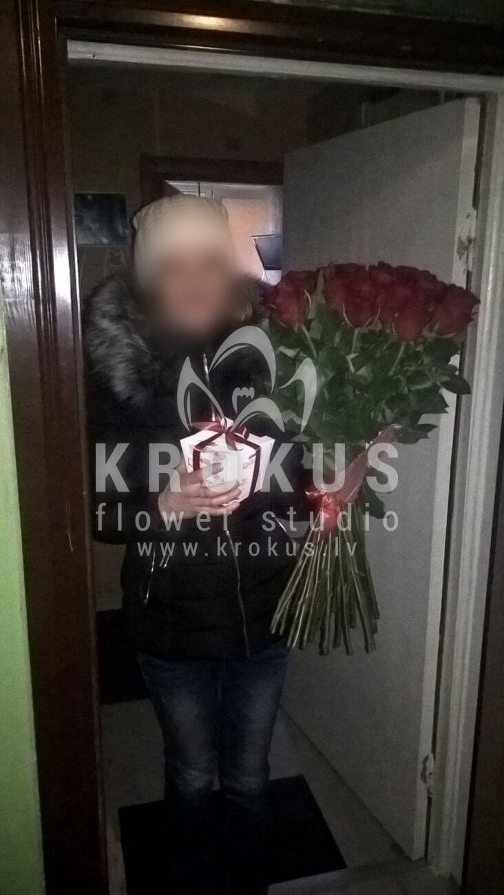 Mēs piegādājām vēl vienu pasūtījumu uz pilsētu . Pasūtītājs vēlējās: Ziedu piegāde Sarkanas Holandes Rozes 40cm. Ziedu piegāde Raffaello 150g (Konfektes RAFFAELLO, 150g