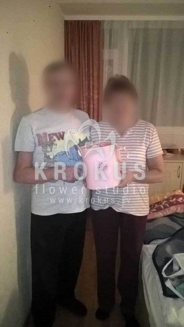 Mēs piegādājām vēl vienu pasūtījumu uz pilsētu . Pasūtītājs vēlējās: Ziedu piegāde Flowerbox ar macarooniem (Izmērs: