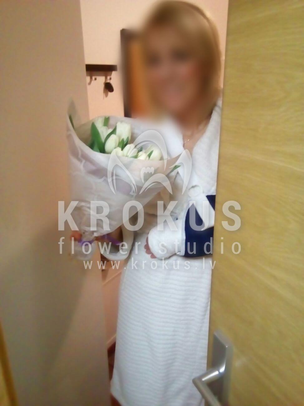 Mēs piegādājām vēl vienu pasūtījumu uz pilsētu . Pasūtītājs vēlējās: Ziedu piegāde Baltas tulpes