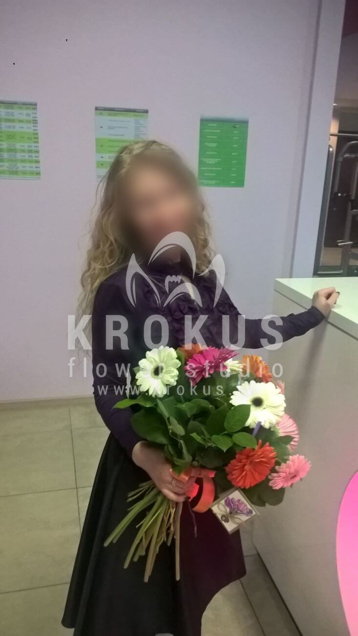 Ziedu sastāvā: Gerberas, Salal (Goltjēra).