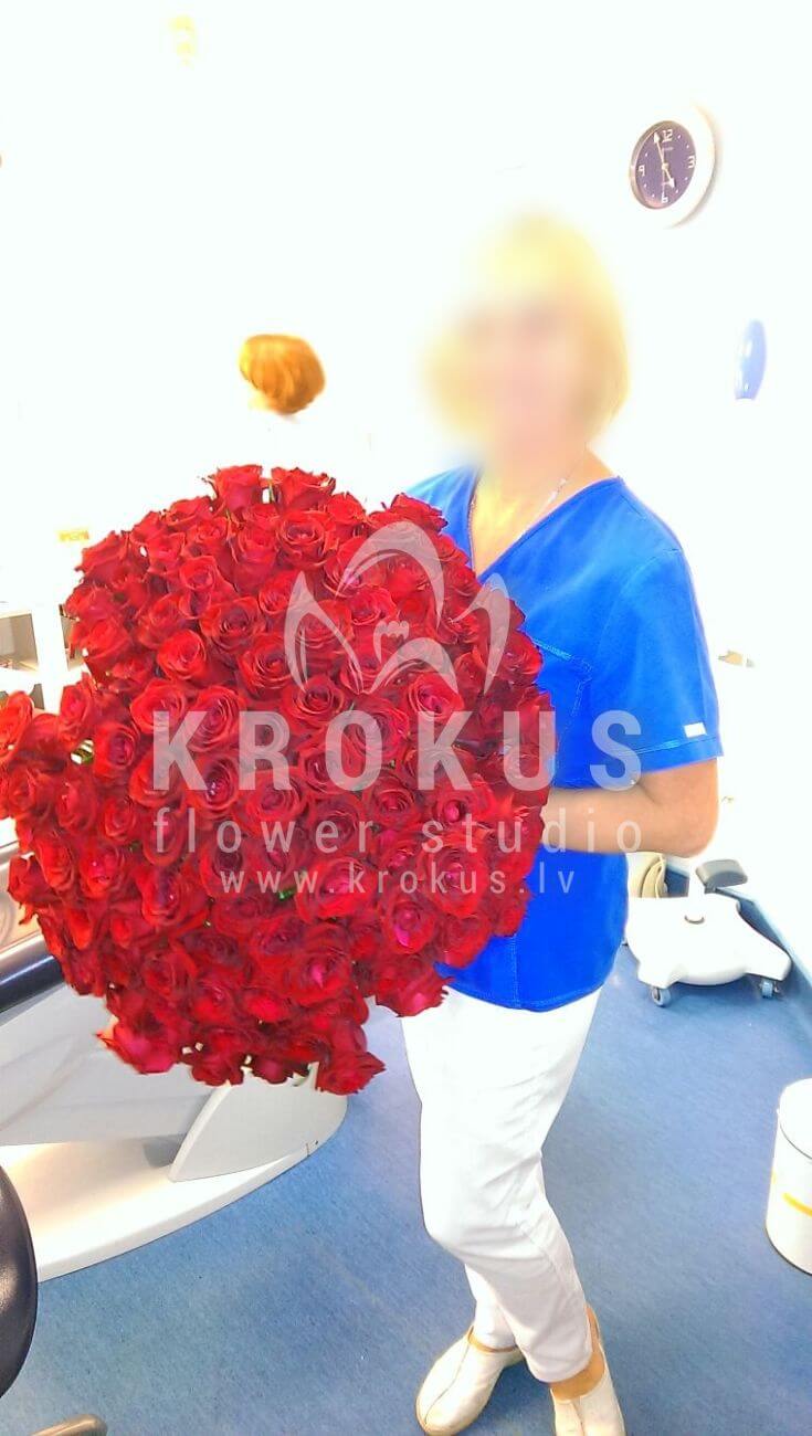 Mēs piegādājām vēl vienu pasūtījumu uz pilsētu . Pasūtītājs vēlējās: Ziedu piegāde 101 Sarkanas rozes XXL SUPER CENA!!!