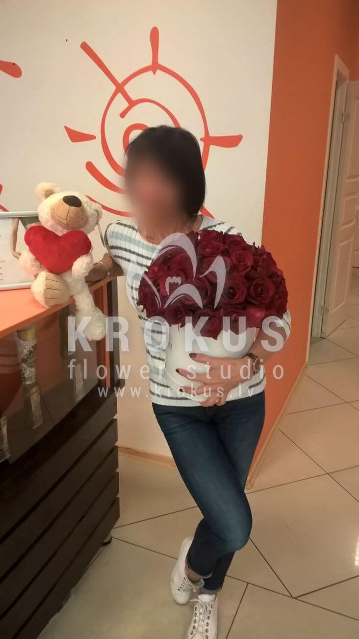 Mēs piegādājām vēl vienu pasūtījumu uz pilsētu . Pasūtītājs vēlējās: Ziedu piegāde Sarkanas rozes kastē (Fotogrāfijai ir ilustratīvs nolūks. Kastes krāsa var atšķirties.). Ziedu piegāde Lāčuks ar sirsniņu 30cm
