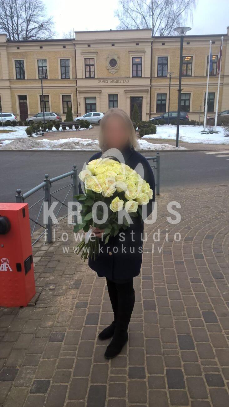 Mēs piegādājām vēl vienu pasūtījumu uz pilsētu . Pasūtītājs vēlējās: Ziedu piegāde Baltas rozes 60cm