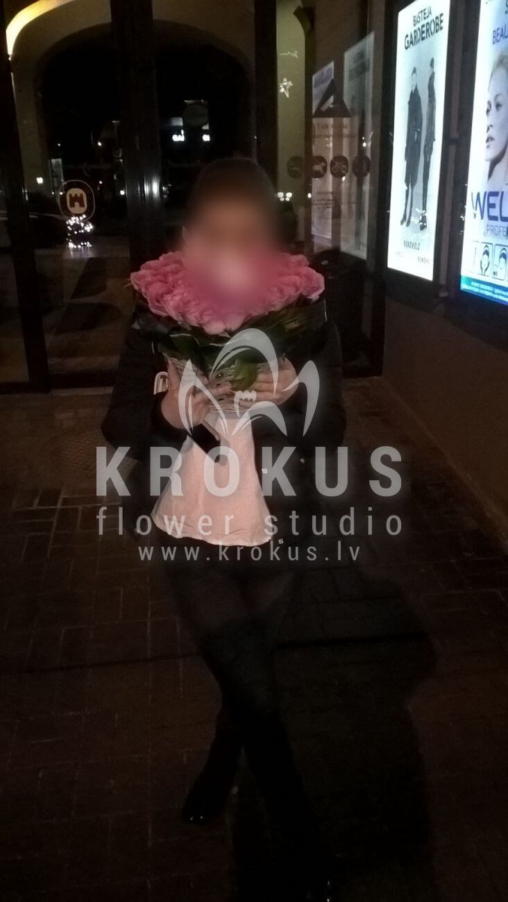 Ziedu sastāvā: Rozā rozes, Aspidistra, Salal (Goltjēra), Bergrass.