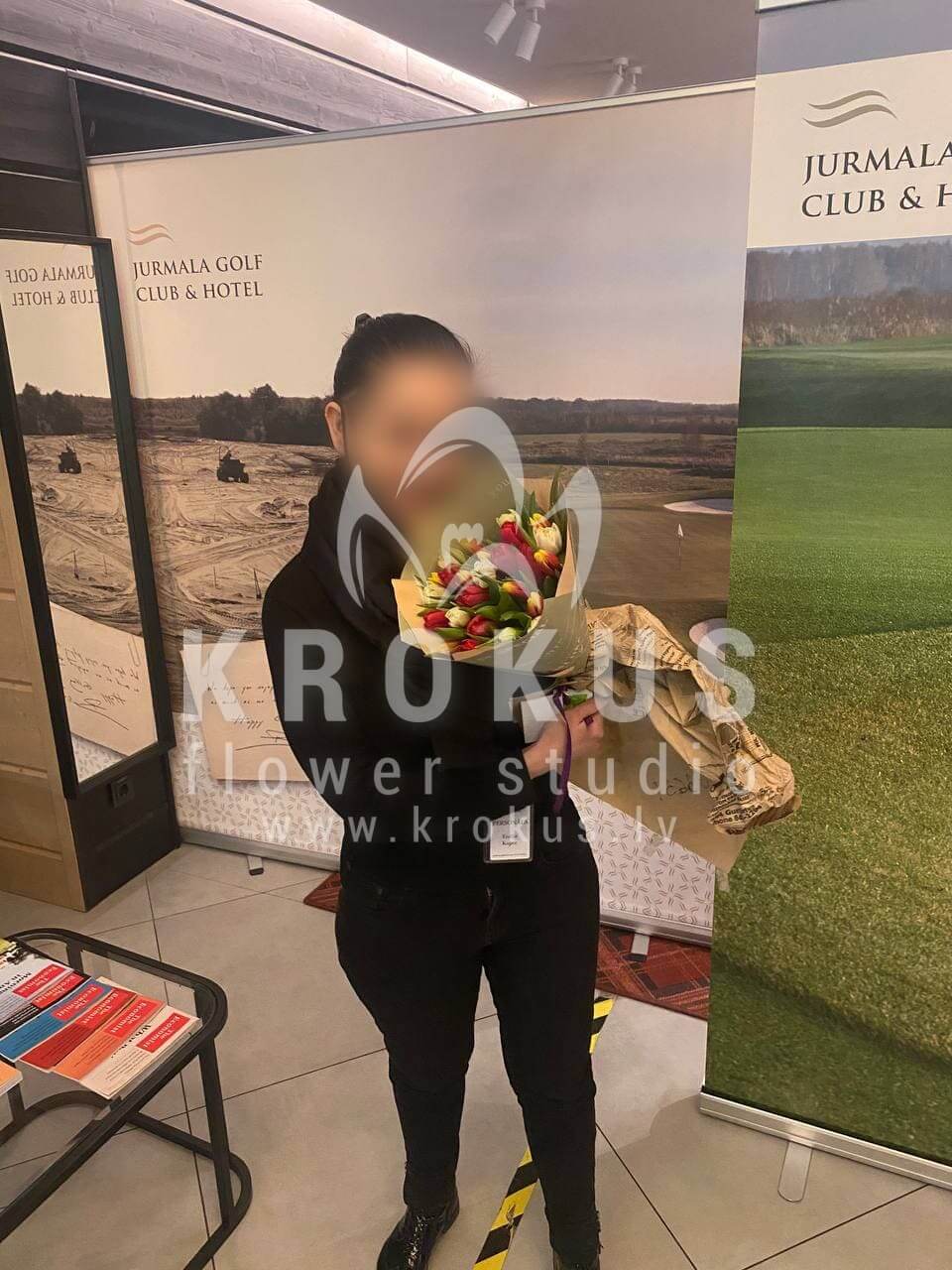 Mēs piegādājām vēl vienu pasūtījumu uz pilsētu Piņķi. Pasūtītājs vēlējās: Ziedu piegāde Krāsainu tulpju pušķis