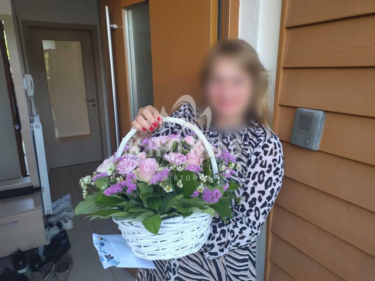 Mēs piegādājām vēl vienu pasūtījumu uz pilsētu Piņķi. Pasūtītājs vēlējās: Ziedu piegāde Ziedu grozs "Feja" (Pušķa sastāvs var nedaudz atšķirties no attēlā redzamā, atkarībā no sezonas!