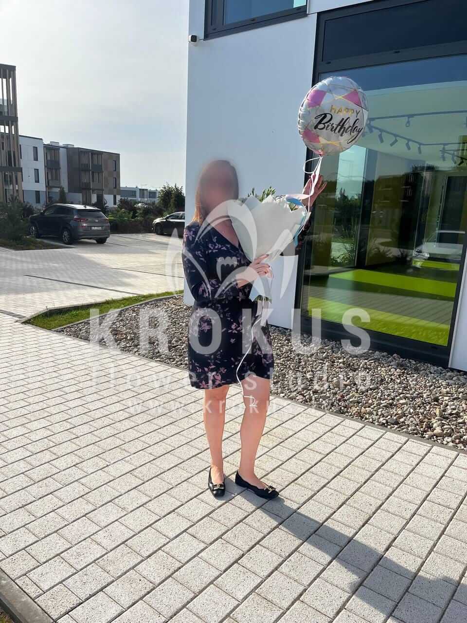 Mēs piegādājām vēl vienu pasūtījumu uz pilsētu Piņķi. Pasūtītājs vēlējās: Ziedu piegāde Par mīlestību. Ziedu piegāde Follija balons Daudz Laimes 46cm