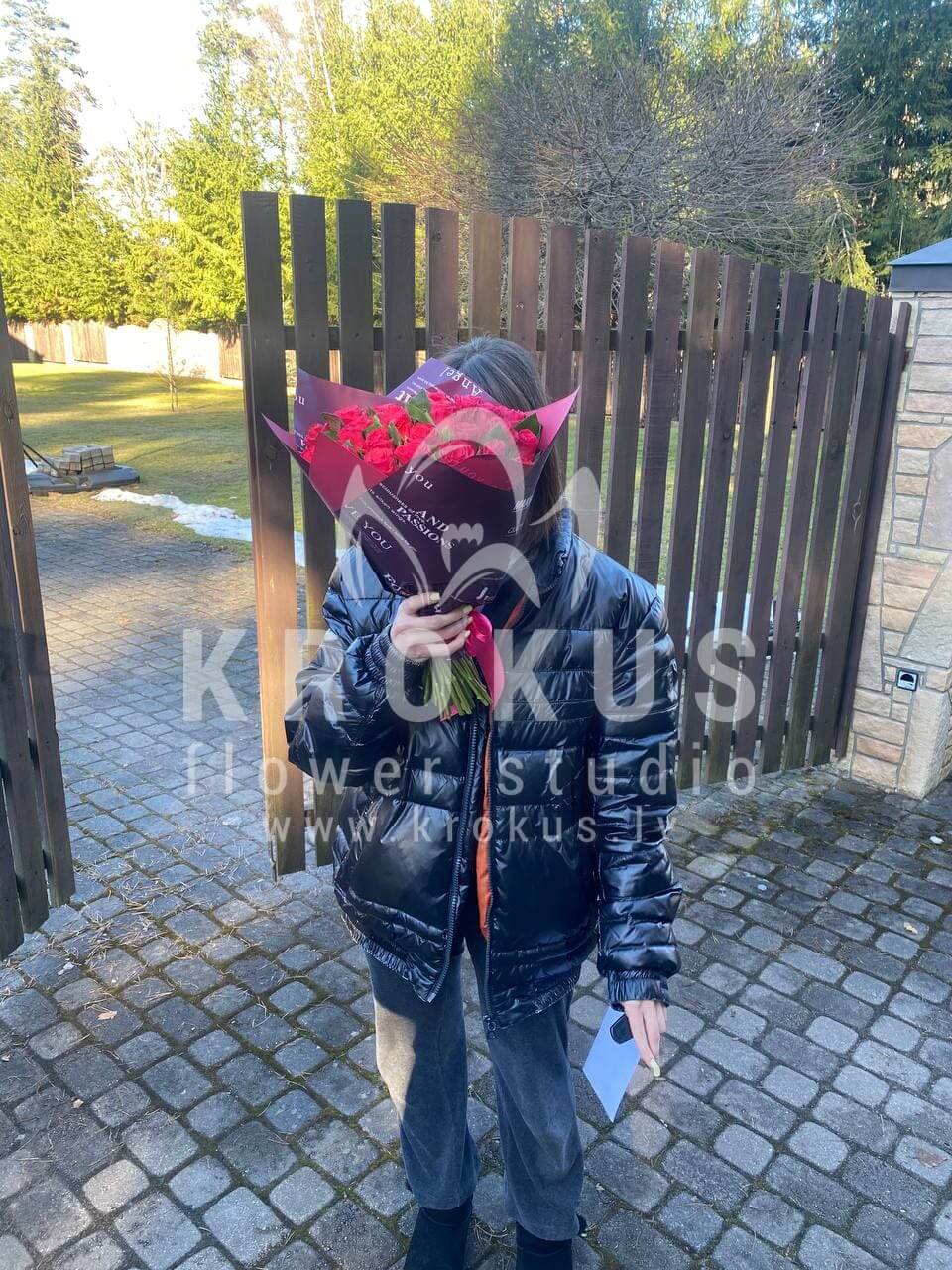 Mēs piegādājām vēl vienu pasūtījumu uz pilsētu Priedkalne. Pasūtītājs vēlējās: Ziedu piegāde Aveņkrāsas rozes 40cm